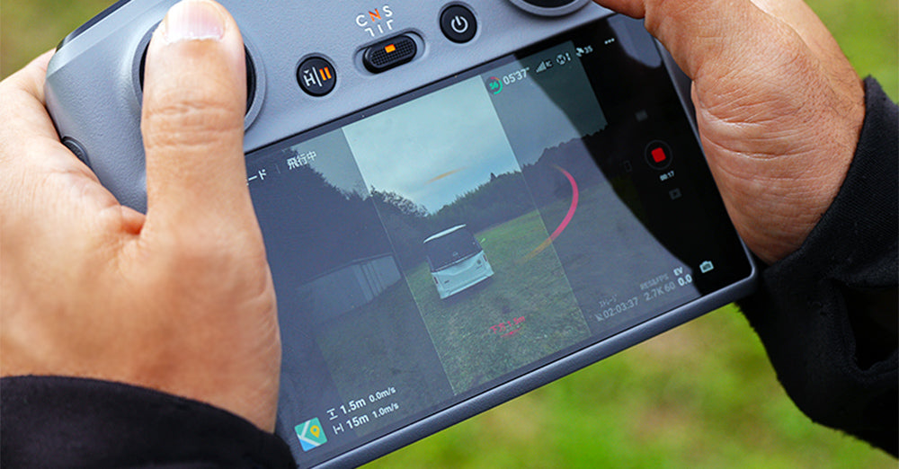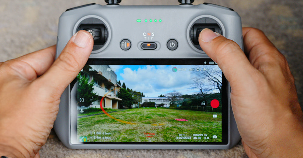 もちろん、送信機での操作にも対応しています。 この場合は DJI Neo 2 デジタルトランシーバー の装着が必要となり、こちらは機体単体版には付属していません。 送信機を使った接続では、スマートフォンとのWi-Fi接続に比べて通信が安定するため、より確かな操作性を確保できます。