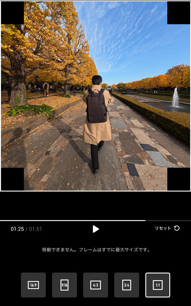 スクエア型センサーを活かし、1回の撮影から複数のアスペクト比を高解像度でトリミングできるため、SNS用や編集用など、用途に合わせて後から柔軟に仕上げられます。